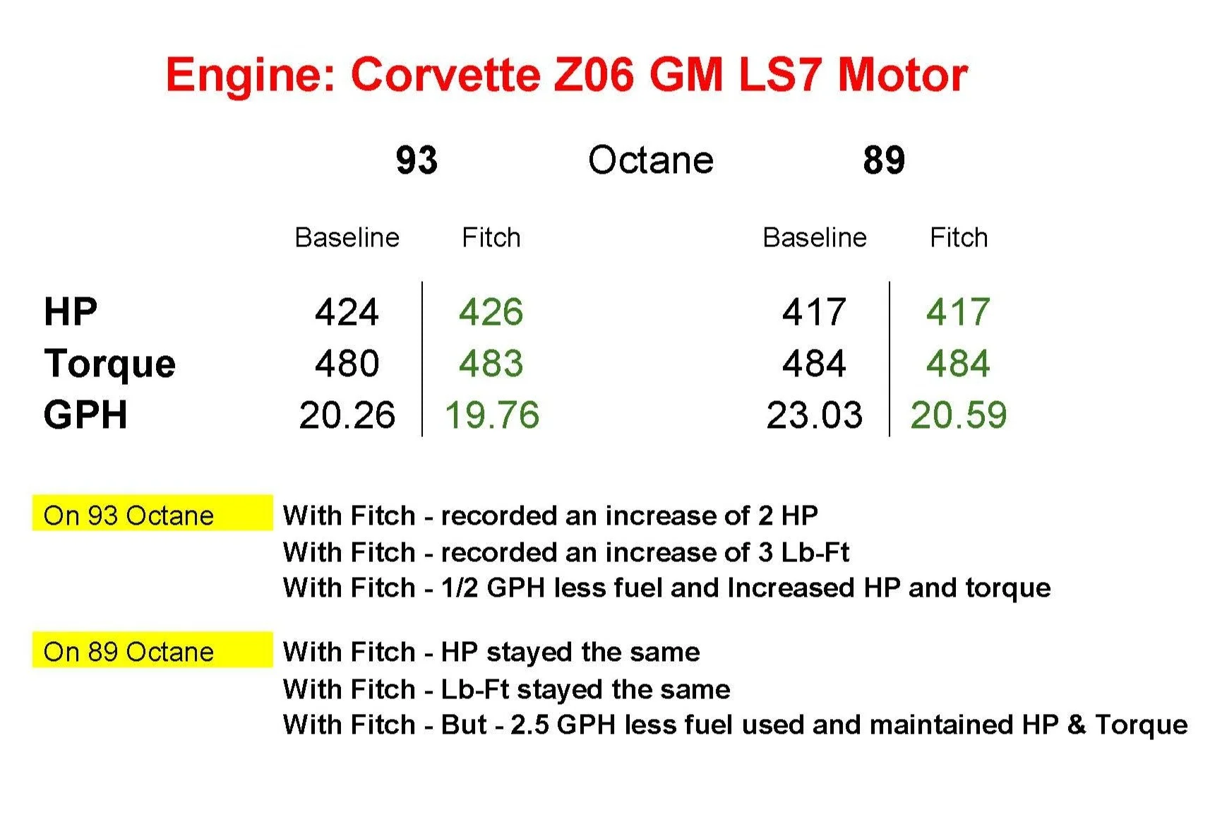 “I personally drive a ’93 Chevrolet Corvette 40th Anniversary edition and ride a Kawasaki Ninja ZX12R. Both require premium high-octane fuels. With Fitch Fuel Catalysts installed in them, I now use regular in the Corvette and mid grade in the bike. These are high performance machines running on less than premium fuels. The best part about it is I get 4 more miles per gallon in the Corvette and 3.5 more miles per gallon in the bike now with less expensive lower octane fuels. That’s an increase in 24% fuel efficiency for the Corvette and 10% increase in fuel efficiency for the bike. I save almost four dollars at the pump every time I fill up the Vette. I have now installed Fitch Fuel Catalysts in my four jet skis, three other motorcycles, two